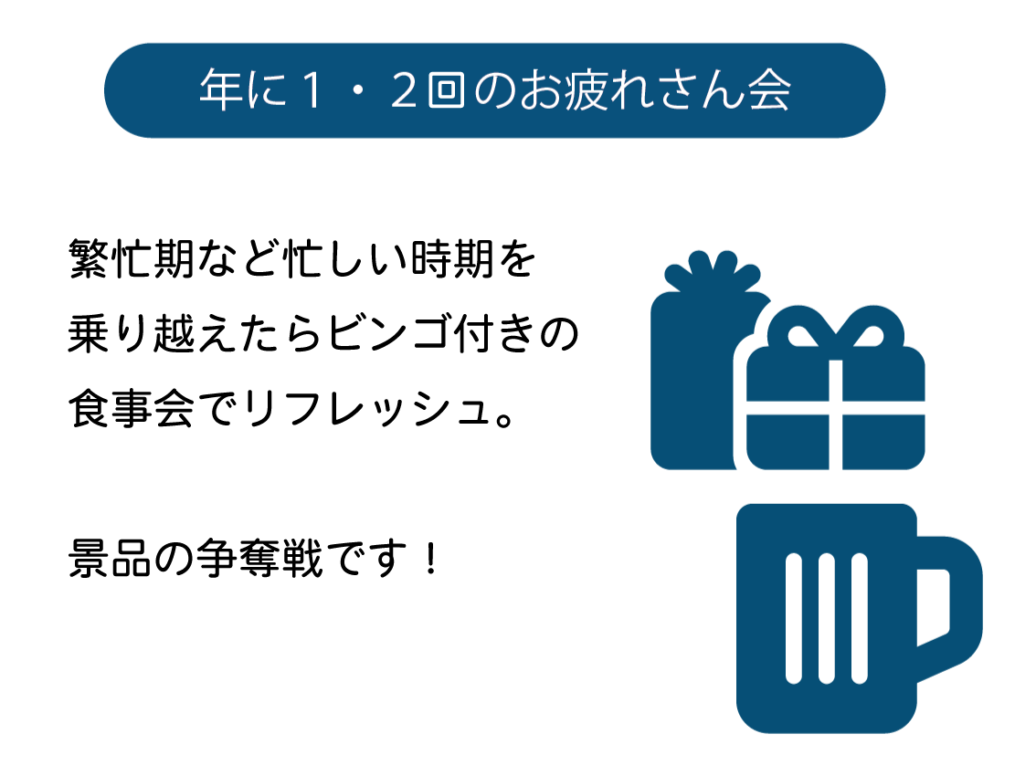| 待遇 | 昇給あり、賞与年2回、交通費支給、各種社会保険完備、家族手当 |